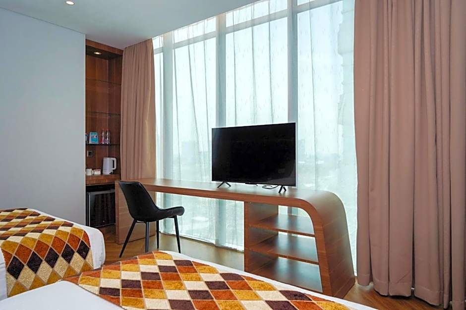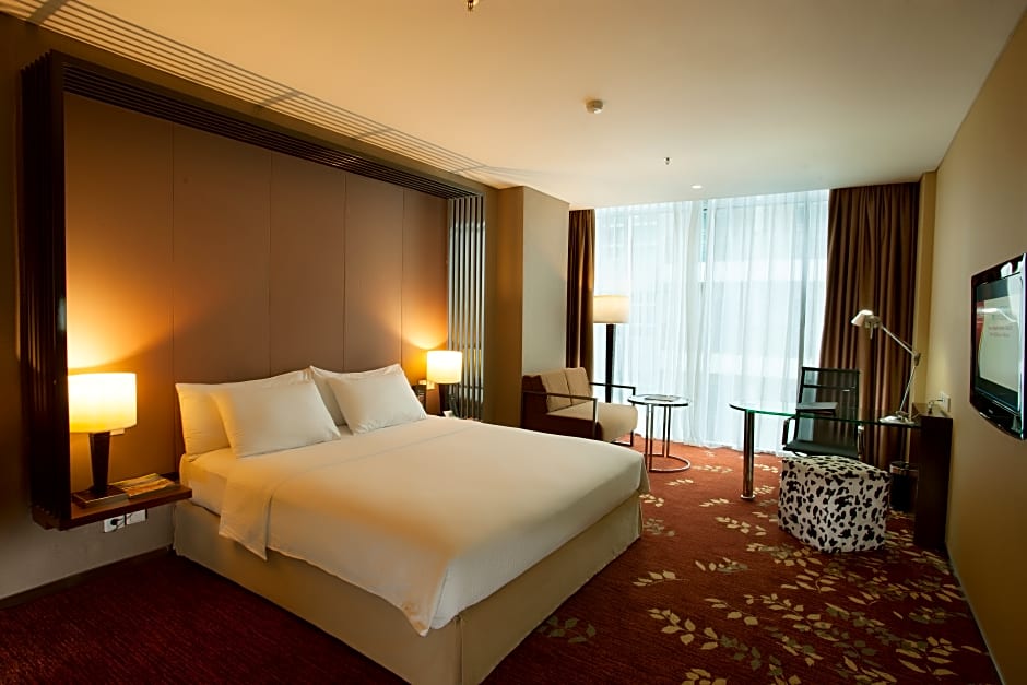 This modern and elegant double or twin room features full-length windows offering city, pool or garden views. Each room is air-conditioned and equipped with a 42-inch LED TV, a safe and a coffee/tea maker. The private bathroom comes with a bathtub, a separate shower and a hairdryer.