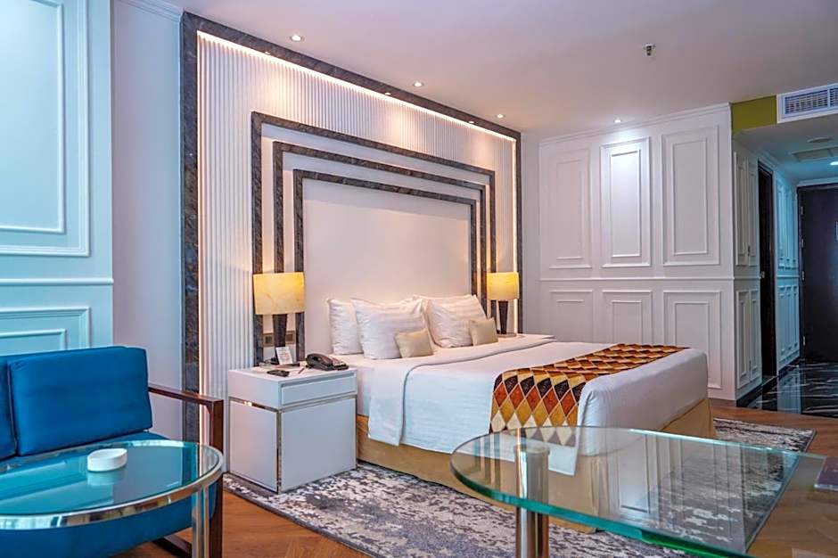 This spacious and air-conditioned double room features stylish interiors and fitted with wardrobe, a 42-inch LED TV with cable channels and a mini-bar. The private bathroom comes with bath and shower facilities, bathrobes, slippers, a hairdryer, as well as free toiletries.